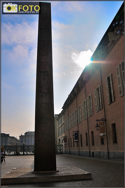La Piazzetta Reale di Torino ospita alcune sculture monumentali dell’artista Arnaldo Pomodoro, inizialmente pensate e create per importanti spettacoli: le quattro Forme del mito per il ciclo dell’Orestea, il Grande Portale per Oedipus Rex e l’Obelisco per La passione di Cleopatra. Pomodoro ebbe a dire: “Il teatro mi dà un senso di libertà creativa: mi sembra di poter materializzare la visionarietà”.