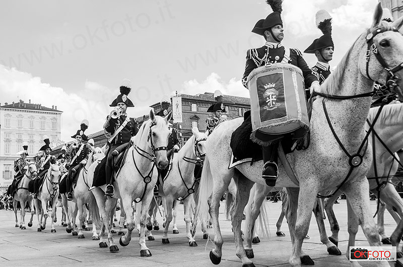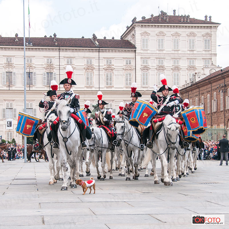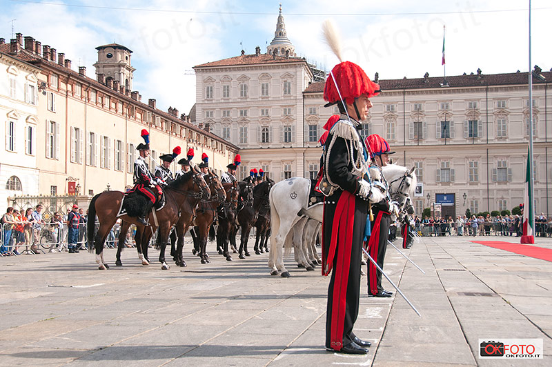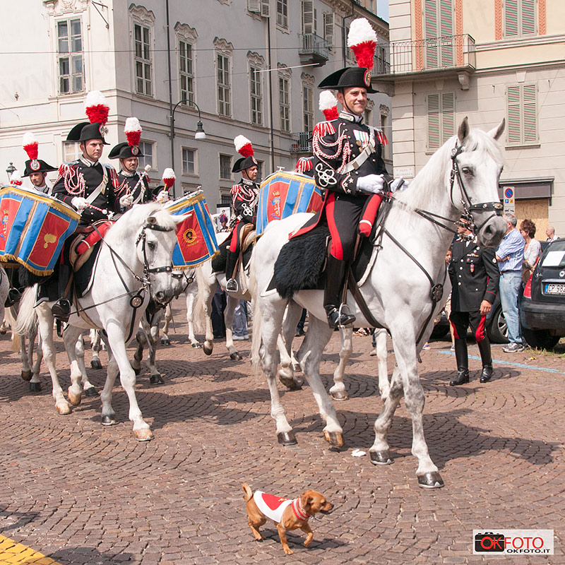 Per questa storica occasione Torino si era preparata nel migliore dei modi, con stendardi nelle piazze principali, la bandiera tricolore alle finestre di molte abitazioni. Tantissimi i cittadini presenti ad ogni manifestazione: grande entusiasmo del pubblico presente domenica mattina alla sfilata del Gruppo Squadroni del 4° Reggimento Carabinieri a cavallo con Stendardo di Guerra e Fanfara, al comando del tenente colonnello Gaspare Giardelli, preceduto da Briciola, la mascotte del Reggimento, che aveva fatto il suo esordio ufficiale in occasione dei festeggiamenti a Roma per il Bicentenario dei Carabinieri. La sfilata dei Carabinieri a cavallo dal parco del Valentino, lungo via Po sino a piazza Castello, con il passaggio davanti alla Caserma Bergia per il saluto al generale Gino Micale, comandante della Legione Piemonte Valle d’Aosta, ancora una volta ha dato l’idea di quanto sia forte il legame tra Torino e i Carabinieri: la grande folla presente ai lati delle strade e all’imbocco di piazza Castello ha certamente piacevolmente sorpreso gli stessi comandanti dei Carabinieri. La stessa ammirazione per i cavalieri del 4° Reggimento si è registrata lungo le strade in cui i Carabinieri hanno sfilato per raggiungere il parco Ruffini da piazza d’Armi; in particolare ieri sera quando i Carabinieri a cavallo hanno indossato le divise storiche dell’Arma.